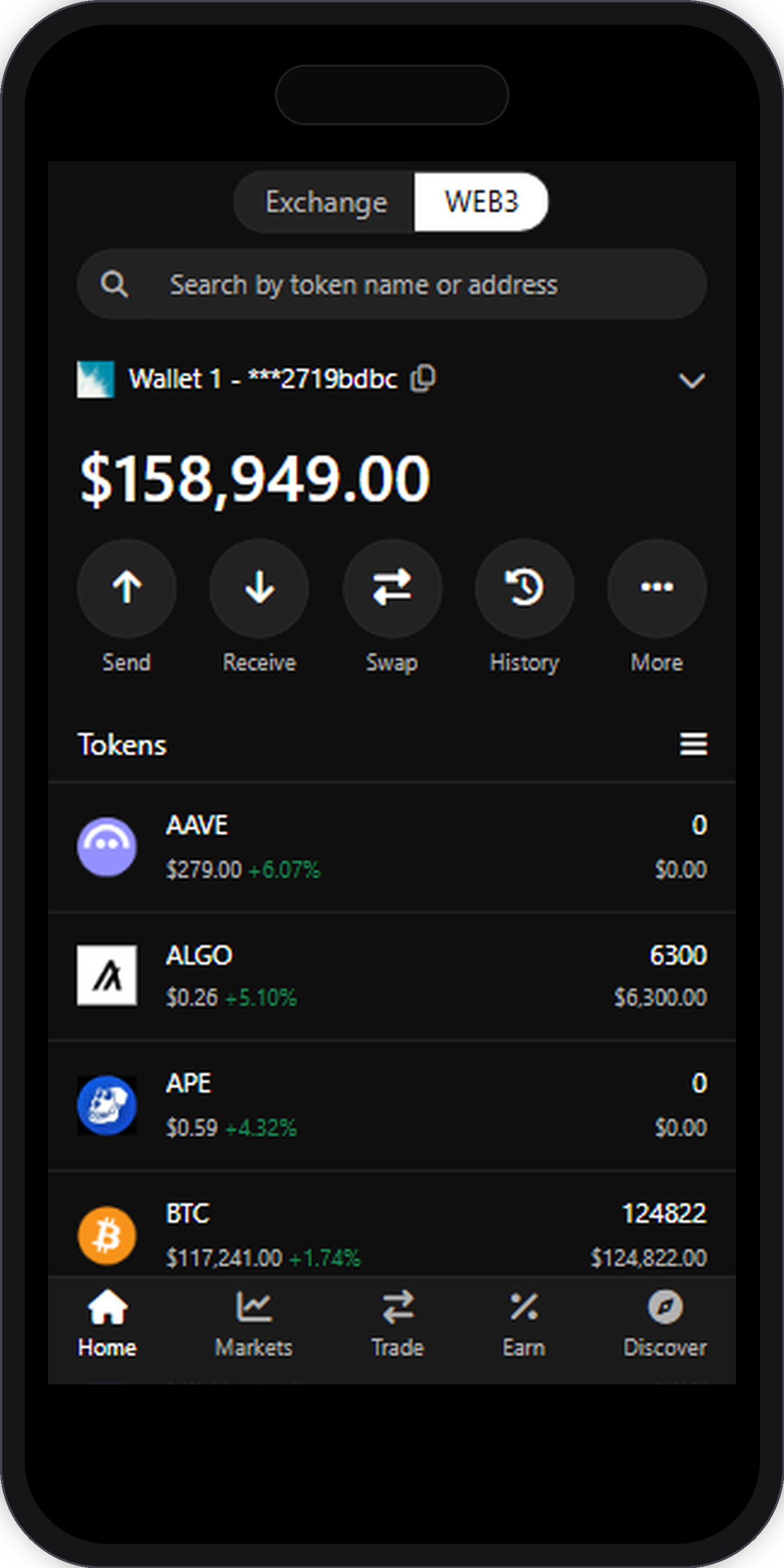 Earn lets you put idle crypto to work through curated yield options—flexible savings for daily interest and instant redemptions, fixed-term vaults for higher APRs, and advanced products like Dual Asset and on-chain staking for boosted returns.